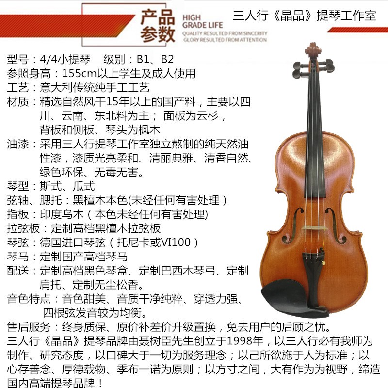 Three-row violin handmade violin high-end playing violin 4 4 B1 B2 grade SF