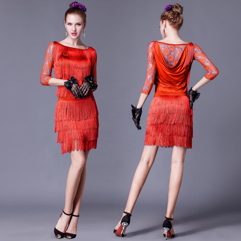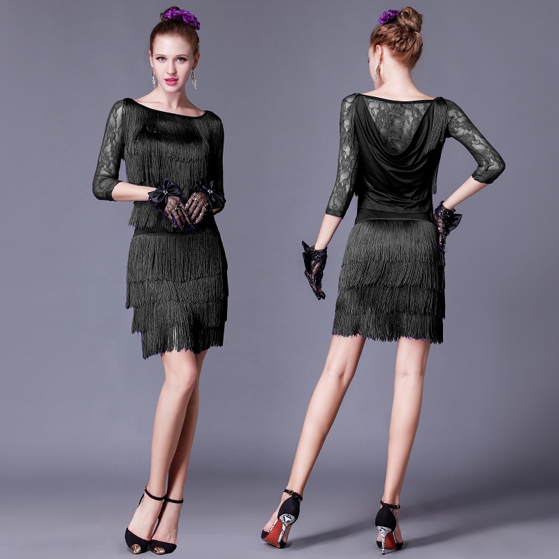 Lan Kwai Fong Latin Dance Sailor Dance two-piece set Women's openwork Lace Gitbar Tassel skirt practice suit set