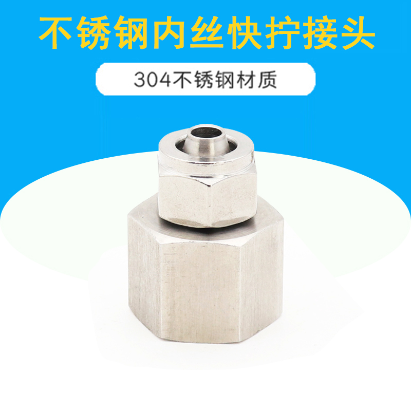 304 stainless steel inner wire straight through quick wringing joint Teflon pipe PU trachea internal thread quick wringing hose connector 6mm