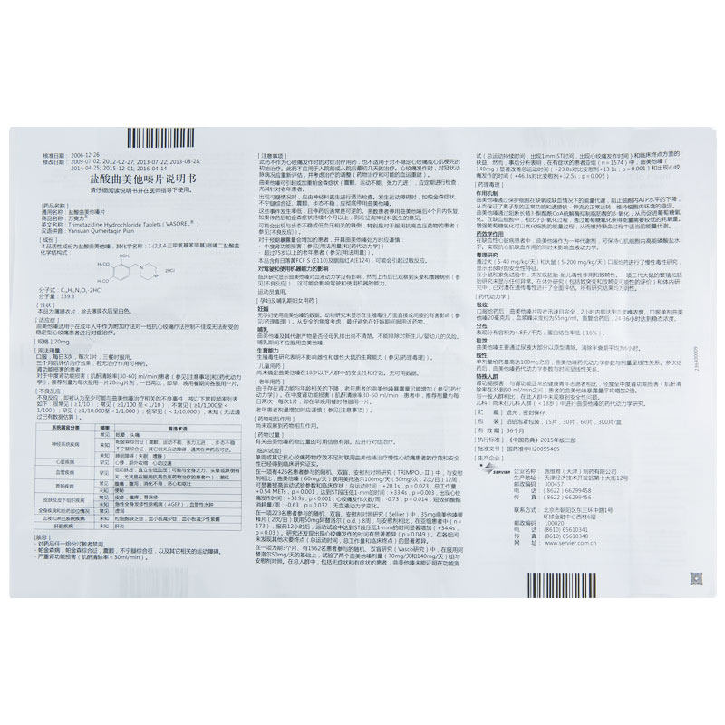 ten thousand Shuang Li ten thousand Shuangli Hydrochloride Trammezine Tablets 20mg * 30 Sheet Boxangina Pectoris preventive treatment Vertigo Tinnitus for Symptoid Therapy