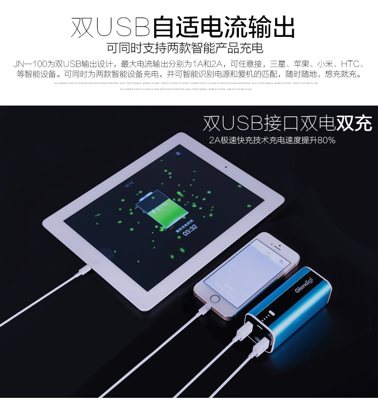 Jiamei GM300 action power supply 20000MAH metal housing lithium wisdom type mobile phone universal mobile charge