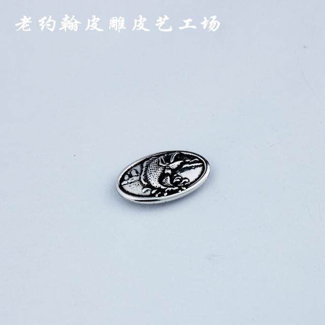 Handicraft leather leather carving arts Ancient silver fish Big geese elk wealth cloth button 25mm silver plated