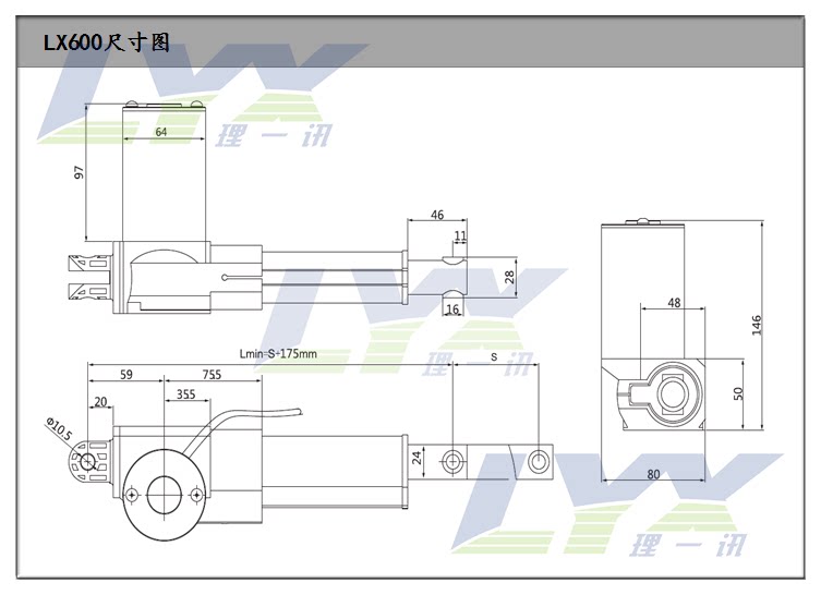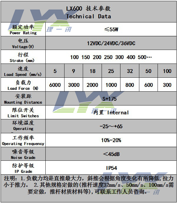 LX600 6000N Electric push rod DC push rod motor Linear drive 12V24V1000mm
