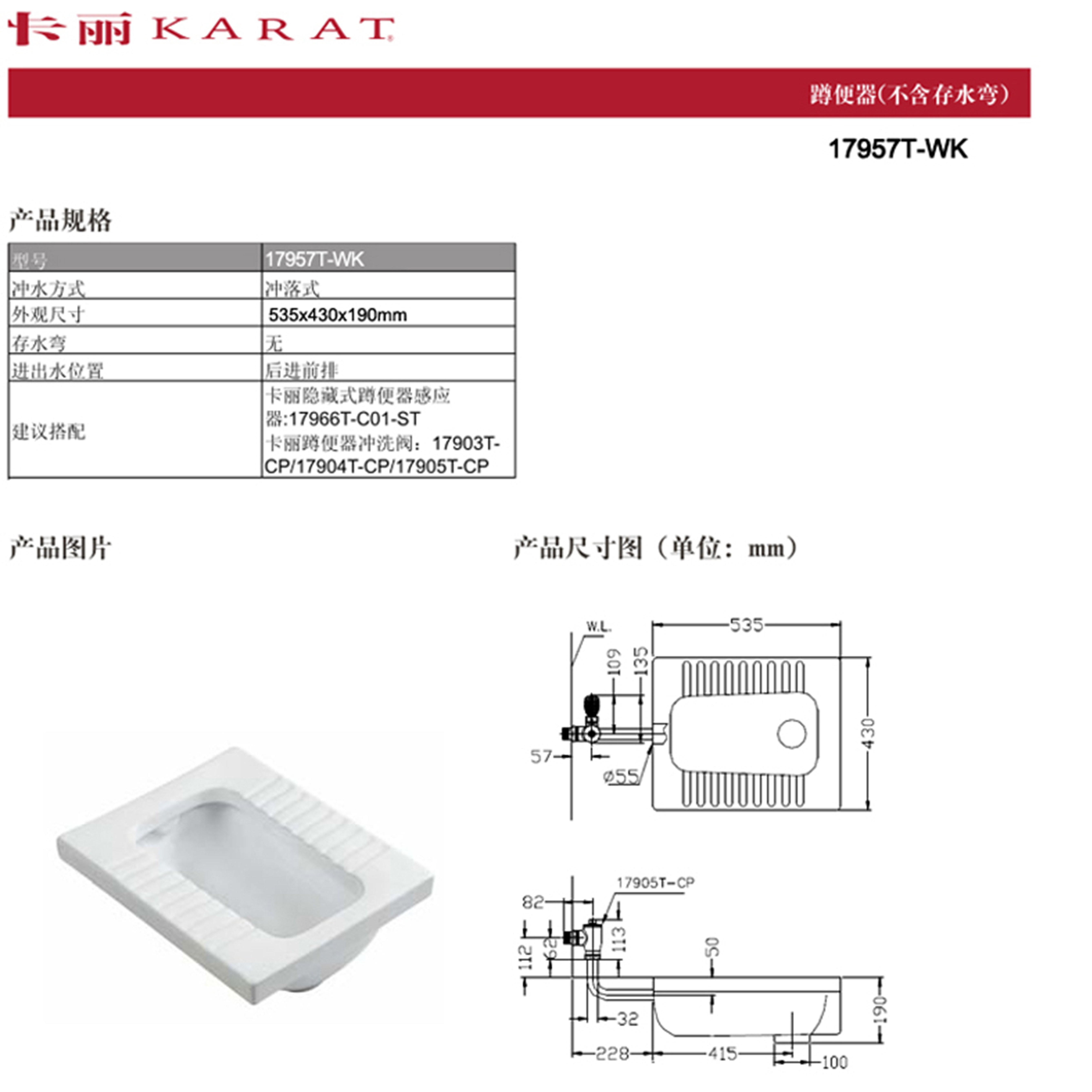 Koller's Kari squat stain pit without storage bends and before water drainage 17957T - WK