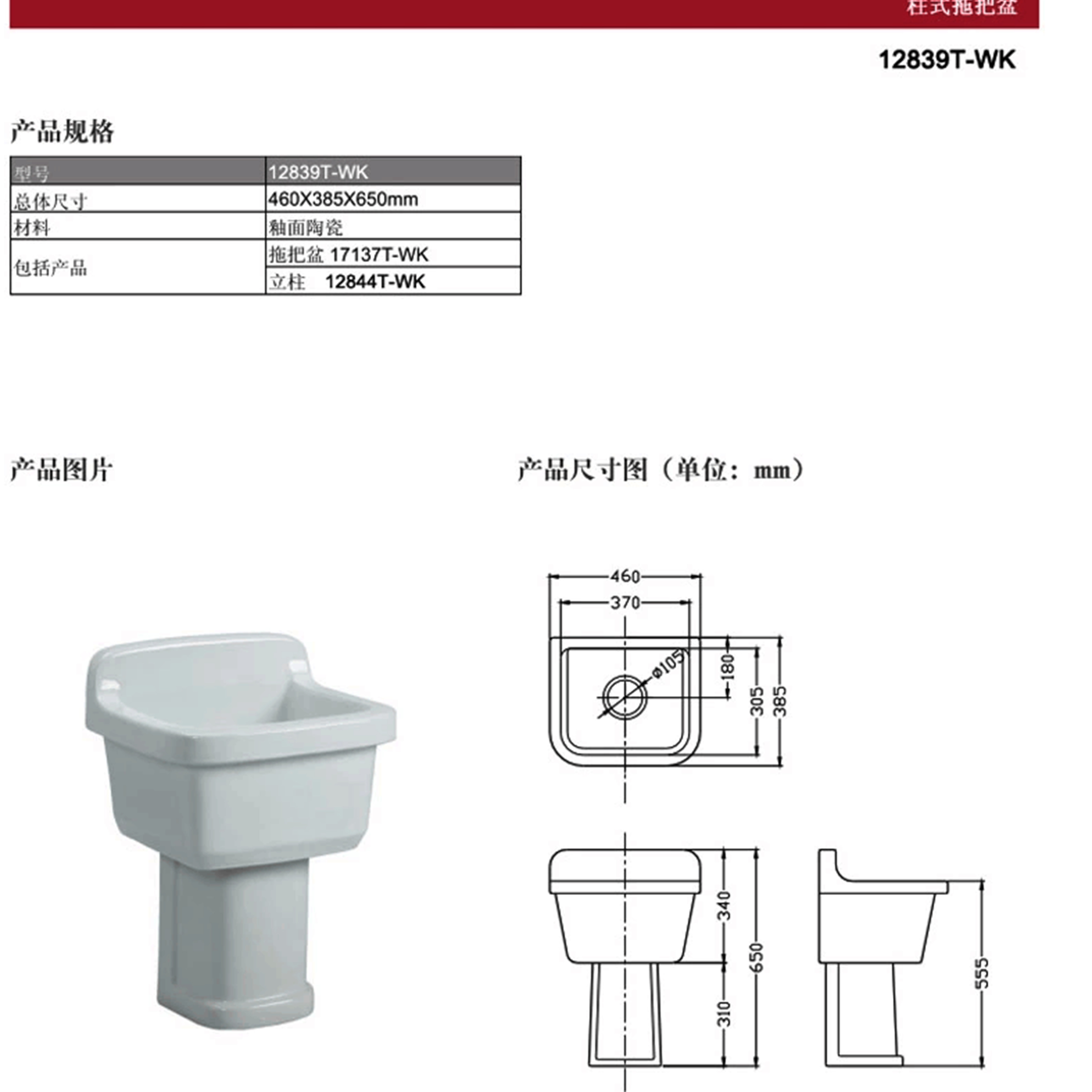 Köhler's Carli Balcony Small column Type mop pool Ceramic square mop basin pier Butpool 12839T
