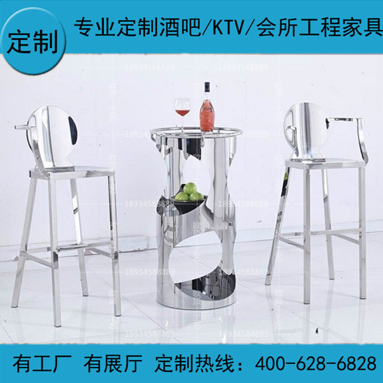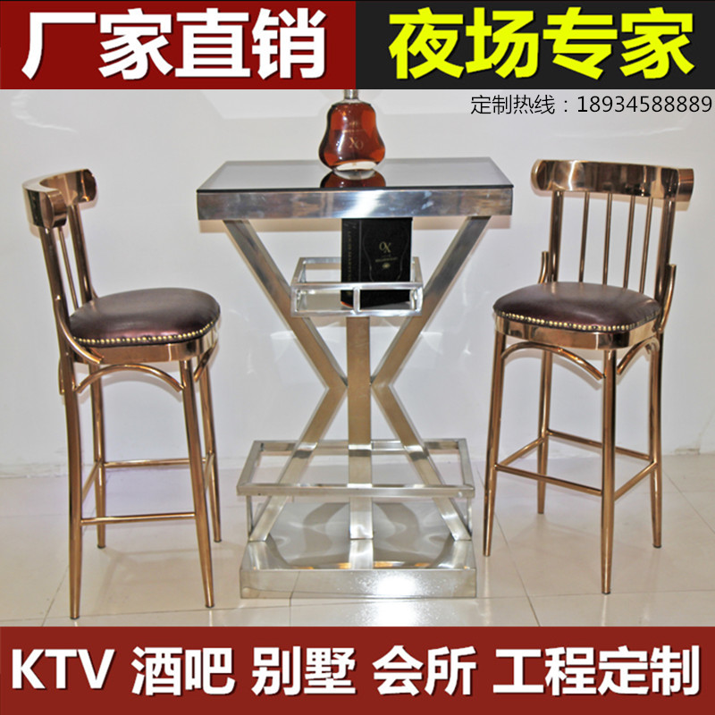 New metal stainless steel rose gold bar high foot table and chair bar bar loose table bar stool factory direct sales custom