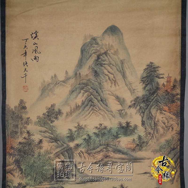 Zhongtang painting Living room hanging painting Zhang Daqian landscape painting Decorative painting Chinese painting Calligraphy painting Ancient painting Xishan Wind and rain has been mounted