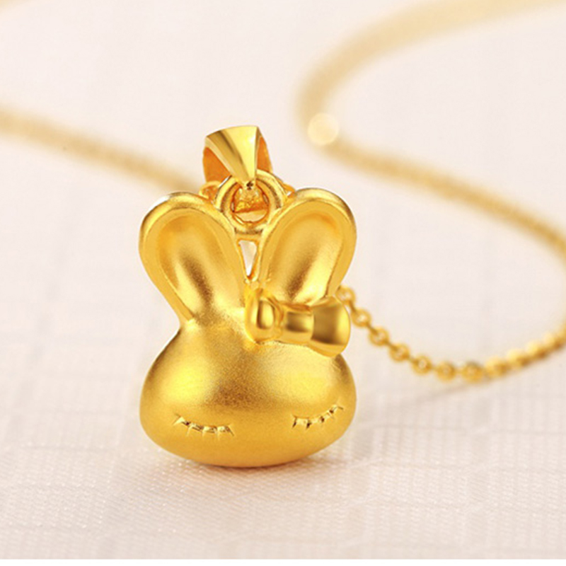 3D hard gold gold duozodiac rabbit pendant 999 foot gold cute rabbit head gold necklace lock bone pendant