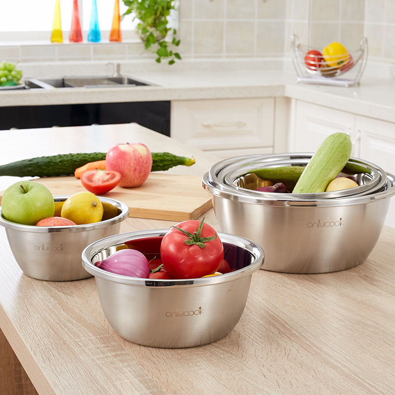 onlycook thickened stainless steel basin set Kitchen household 304 food grade basin set 6-pack vegetable wash basin steel basin