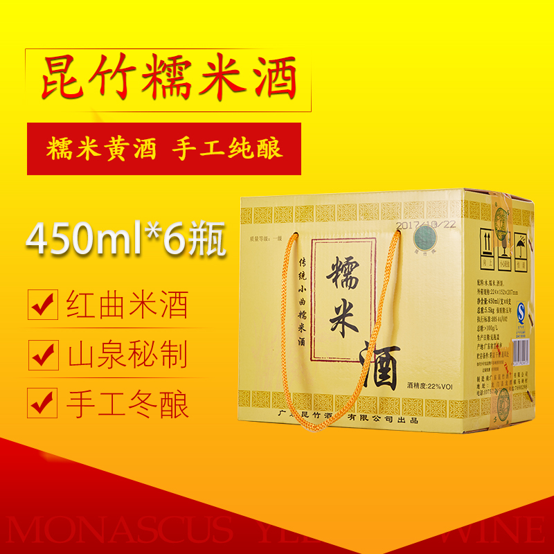 Huizhou Hakka glutinous rice wine rice wine self-brewed Kunzhu brand sweet rice wine 450ml * 6 bottles cooking wine gift moon wine