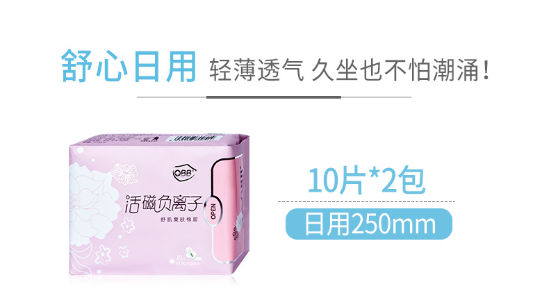 obb negative ion sanitary cotton female daily combined pack 2-bag breathable no-fluorescent negative ion aunt towel
