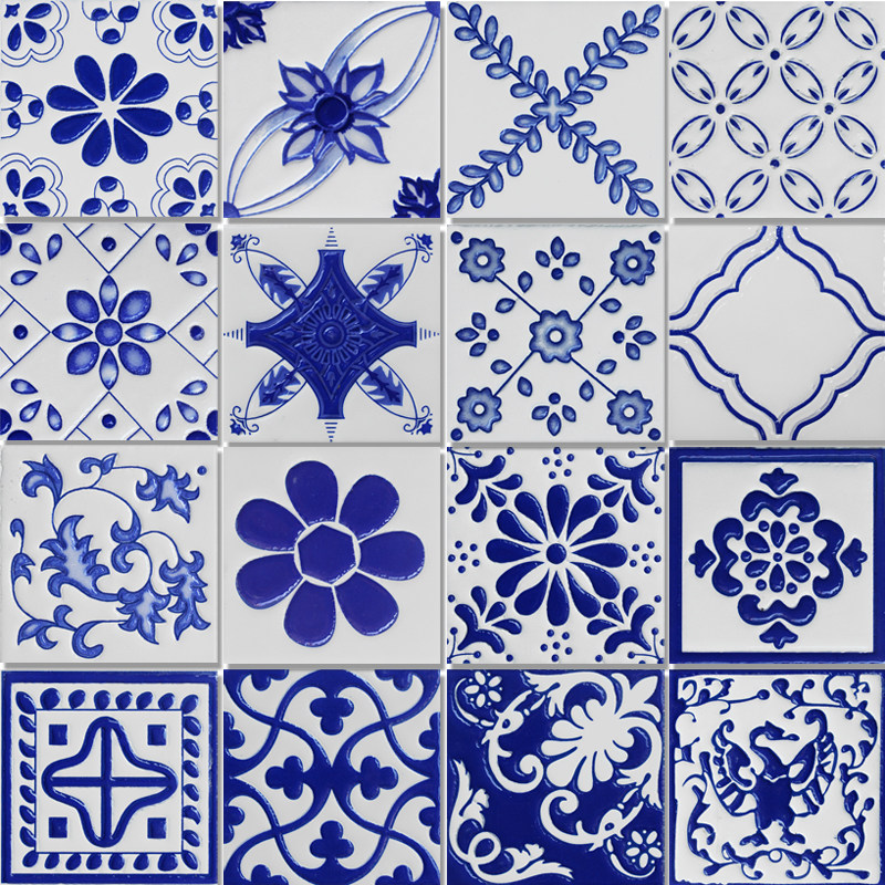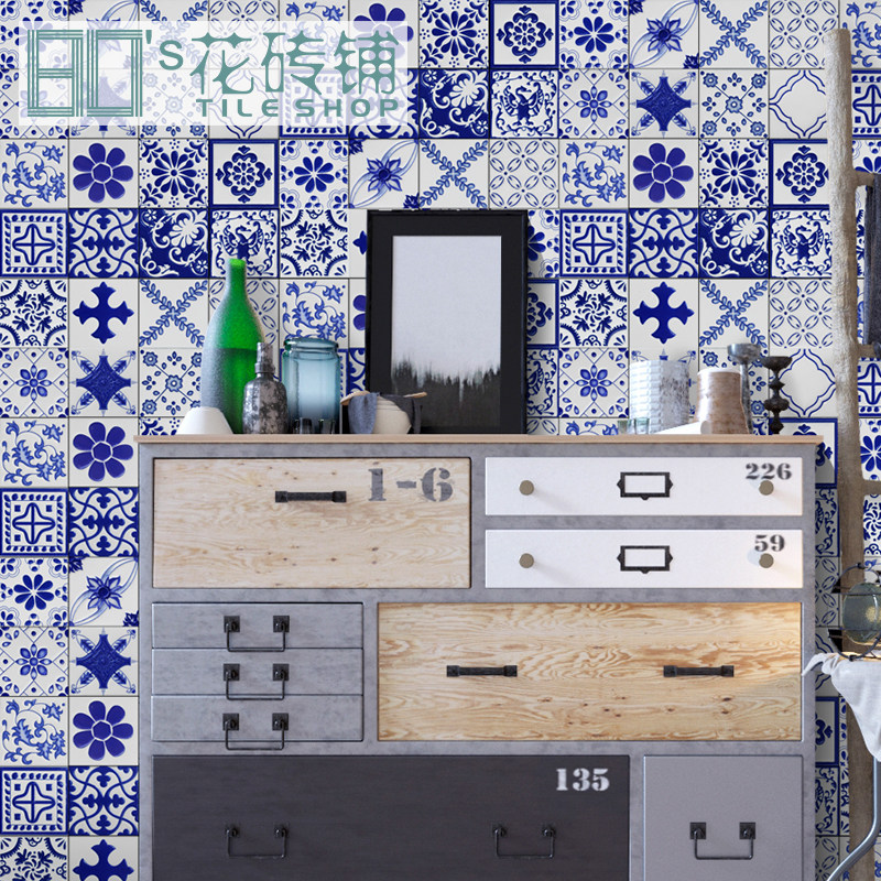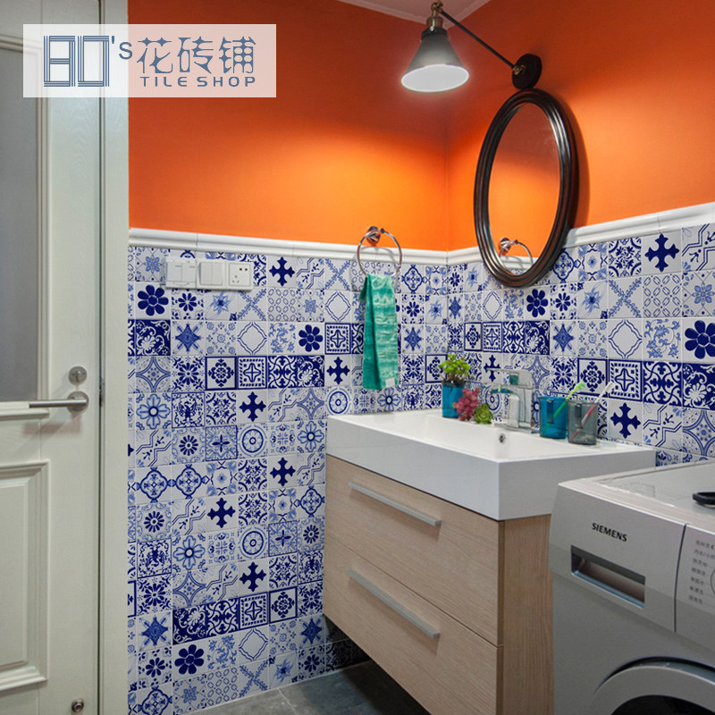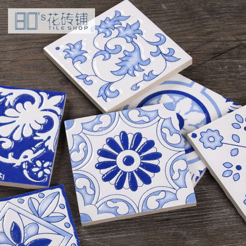 Small tile bathroom tile non-slip floor tile blue and white porcelain blue vintage tile 100 × 100 small fresh wall tiles