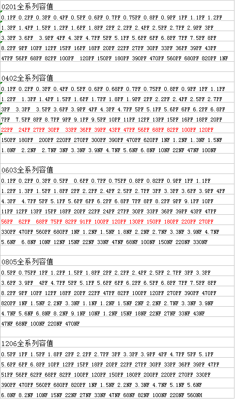 Village field Precision capacitor 0201 0402 0603 0805 0805 1% B stalls 0 1pF 0 5PF 10PF 1NF