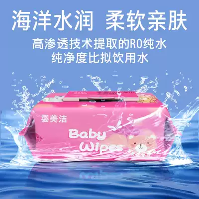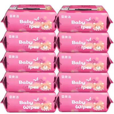 Baby Meijie Baby Hand Wipes Newborn Children Baby Wipes No Fluorescent and No Flavor 80 Pumping 10 Big Packaging
