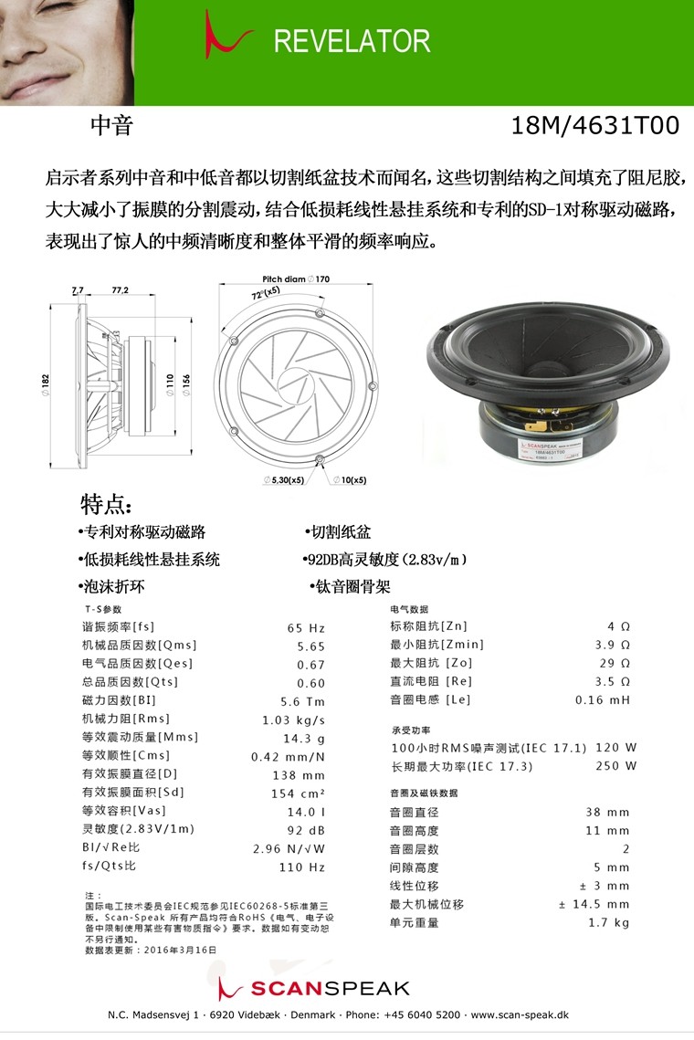 Danish SCAN-SPEAK 18M 4631T00 Titanium Voice Coil 6.5 inch 182mm pure alto speaker