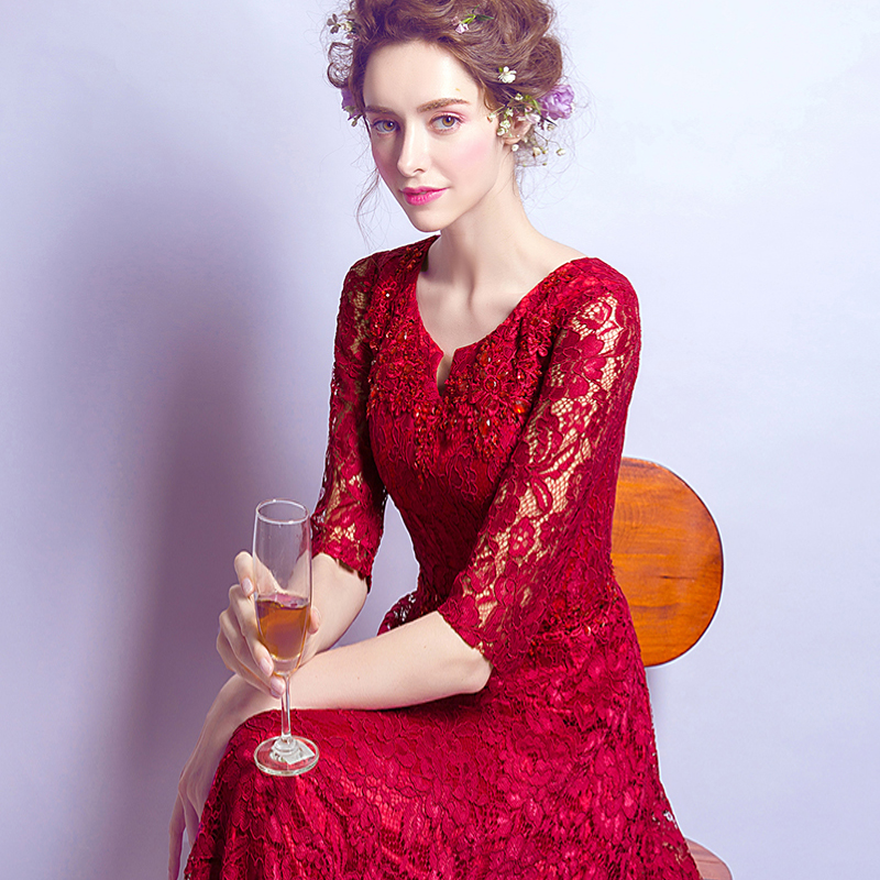 (Special Price Clearance) Temperament Wine Red Brides Wedding Toast Wedding Toast Wedding Dresses Evening Dress 2523