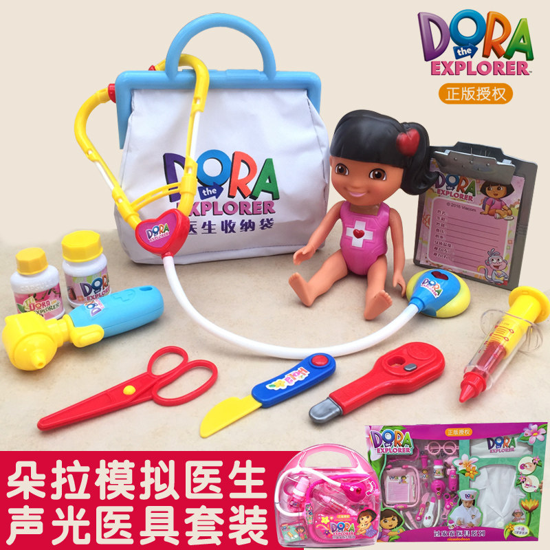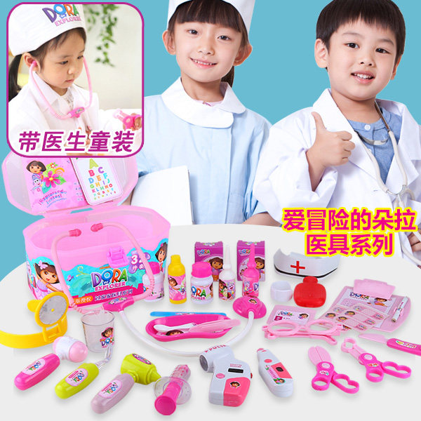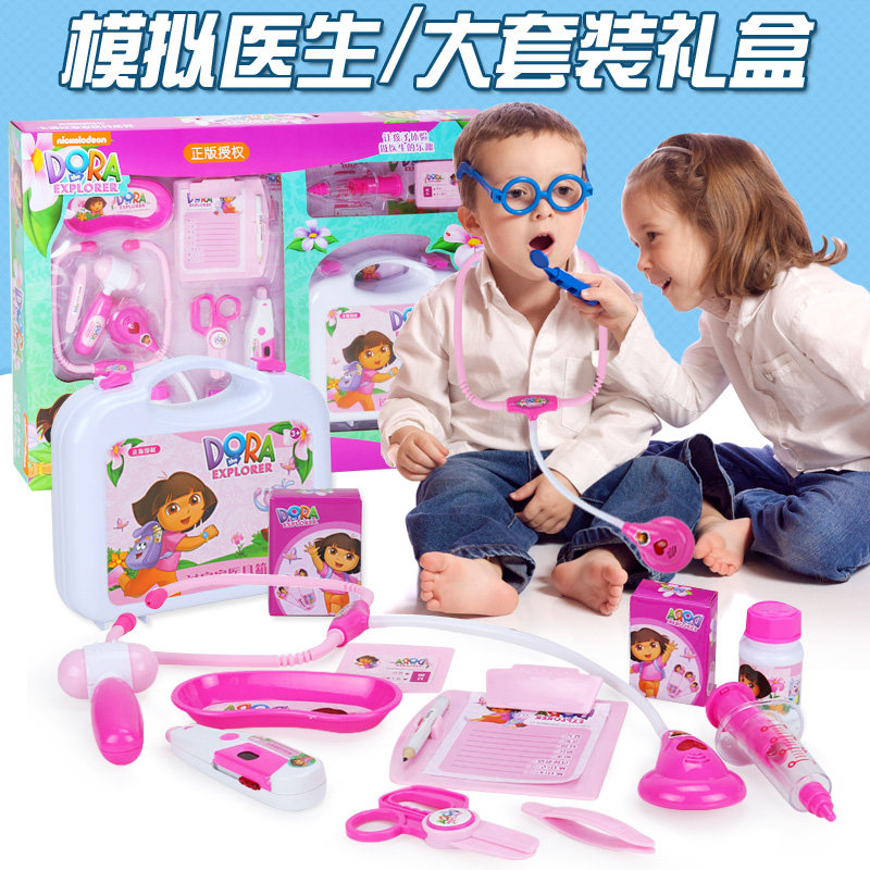 Dora doctor's toy simulation beating pin stethoscope nurse clothing medical box suit male girl children posing as a family wine