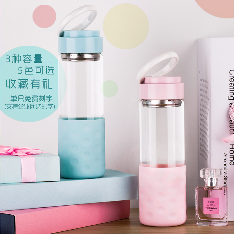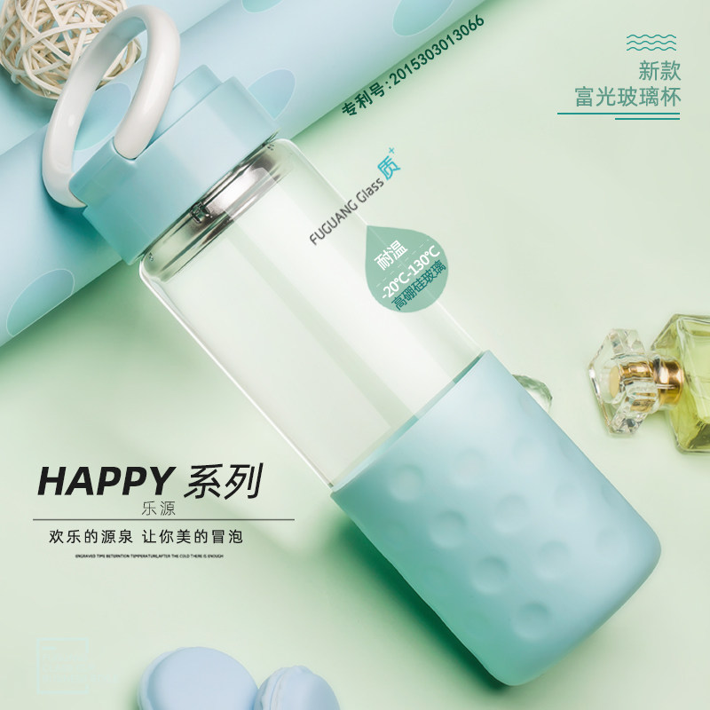 Fuguang glass Portable large capacity creative handy cup Men and women couples with lid filter ins flower tea cup