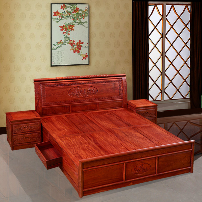 Ju Bosch mahogany furniture Burmese rosewood Chinese solid wood bed big fruit red sandalwood Ming and Qing classical double mahogany bed