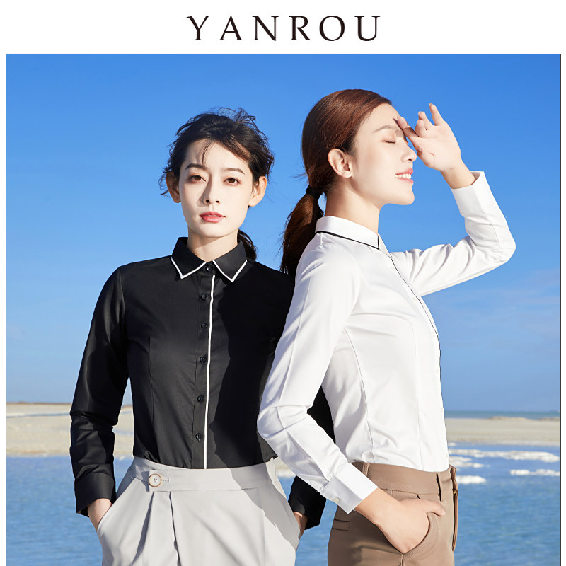 Spring and summer Korean version professional white shirt women's long-sleeved slim-fit women's OL base shirt Formal slim-fit shirt work clothes cotton