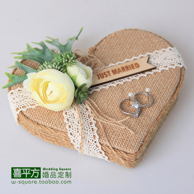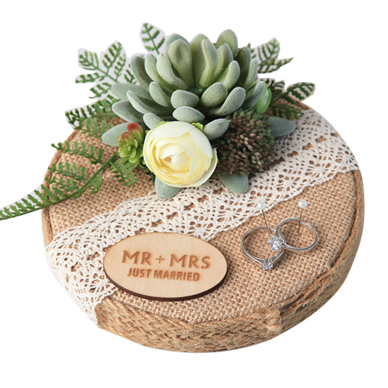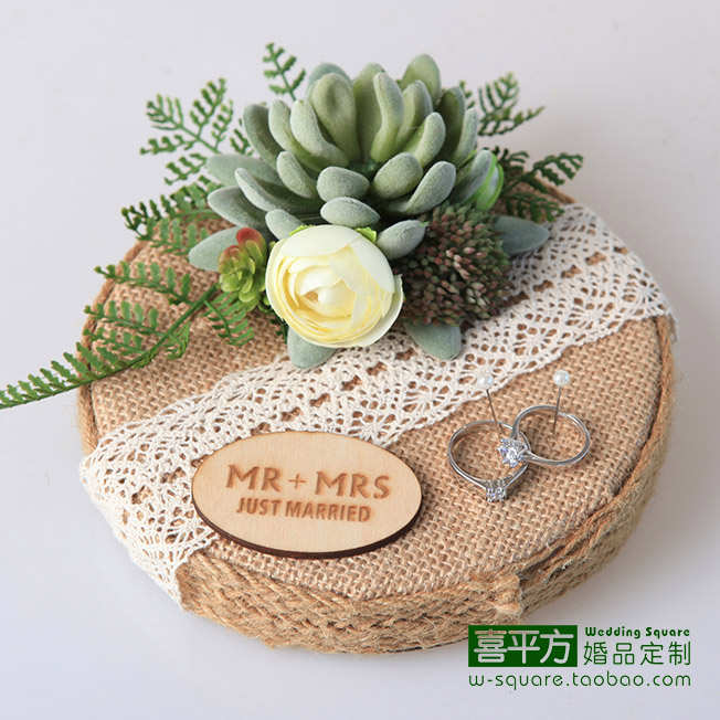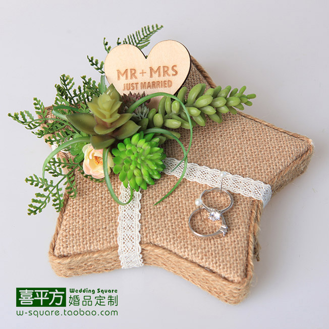 Xi square hemp series ring pillow original handmade forest succulent retro wedding custom ring support photo props