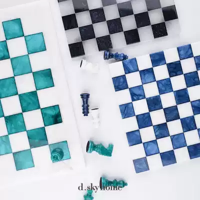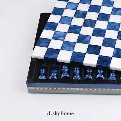 Diskai Italy imported peacock green agate stone chess chess Nordic light luxury checkerboard ornaments