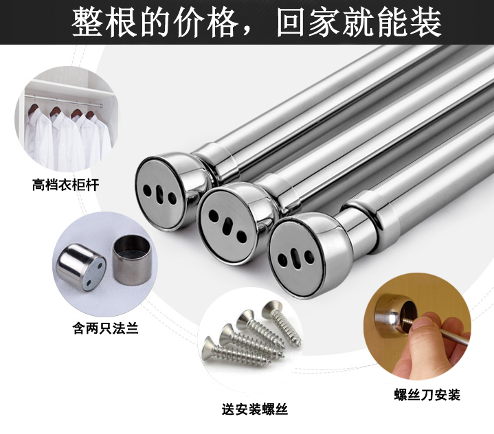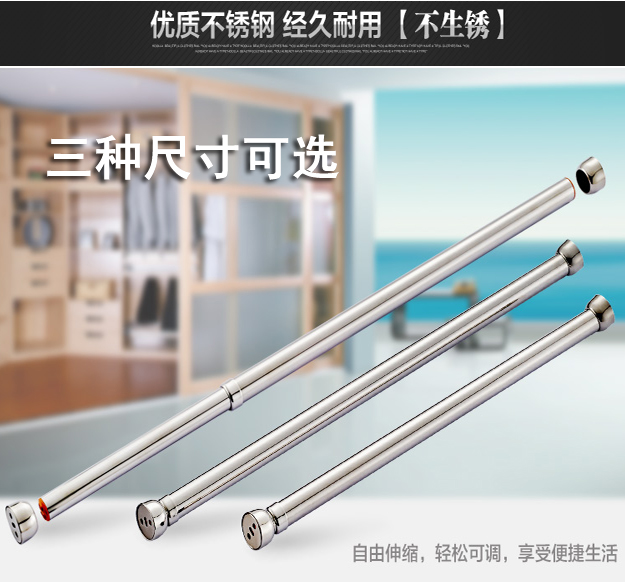 Thickened All Stainless Steel Hanging Clothes Rod telescopic adjustment Clothes hanger hanger Hanger Wardrobe Cabinet Inner Hardware Hanging Clothes Stick