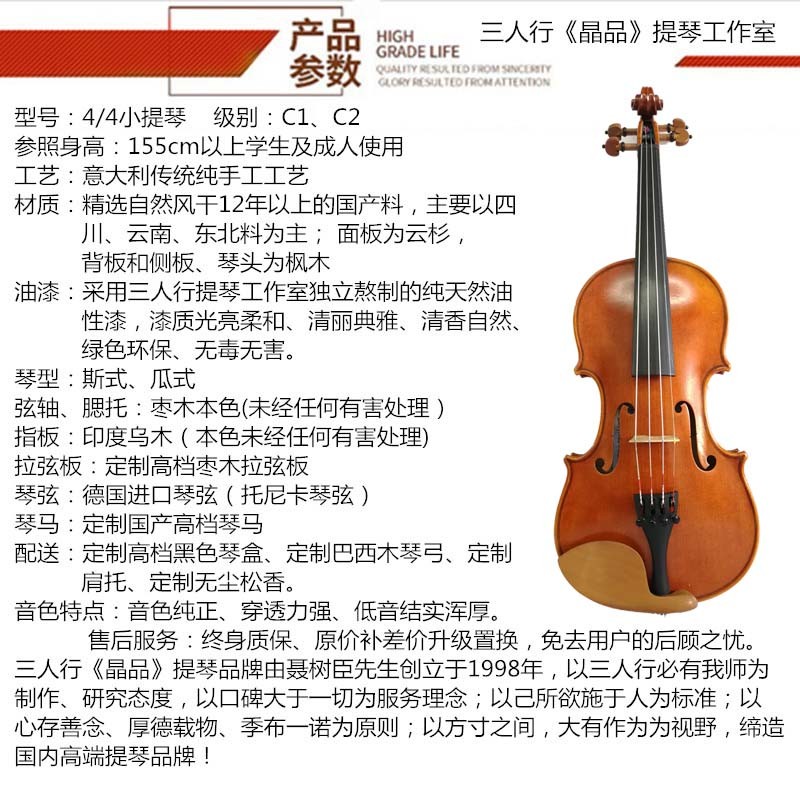 Three-row violin pure handmade violin high-end practice piano verification test violin 4 4C1 C2 grade SF