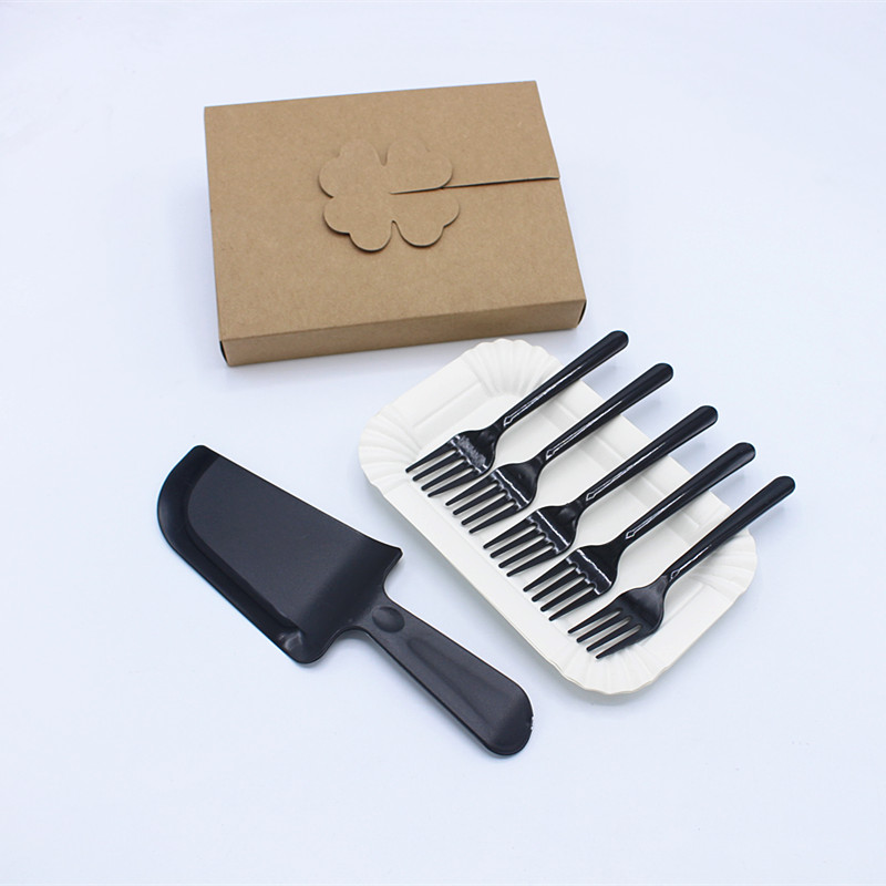 Cake cutlery knife and fork disposable plastic knife and fork plate set birthday cake knife and fork plate set combination three-in-one