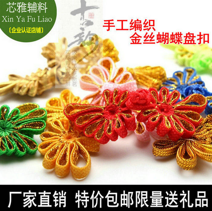 Disc buckle clasp Tang Dress Clasp National Wind Joy Stick Qipao Pan Button Chinese Pan Button Golden Silk Butterfly Button-Taobao