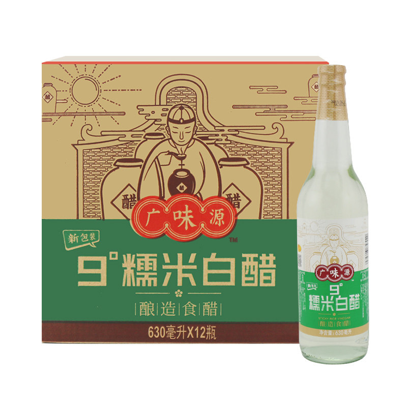 Guangweiyuan 9 degrees rice vinegar 630ml*12 bottles of pure brewed rice vinegar white vinegar sushi cold marinated multi-province