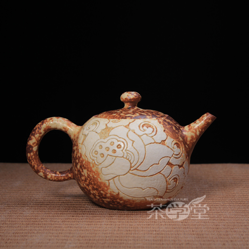 Weiwan pottery artist Chen Mingqian hand-carved floating cloud lotus peng is carving the pot flower teapot pottery teapot pure hand-made