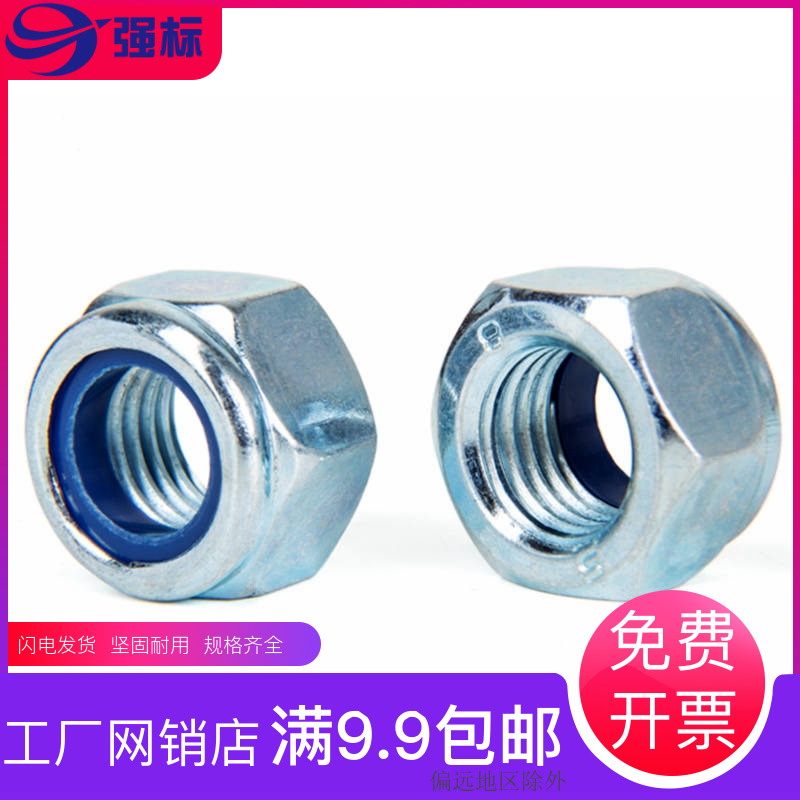 Galvanized anti-loose 8 8 nylon anti-loose self-locking nut Nylon screw cap M2-M27 non-slip locking fine tooth carbon steel