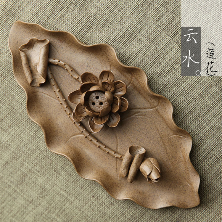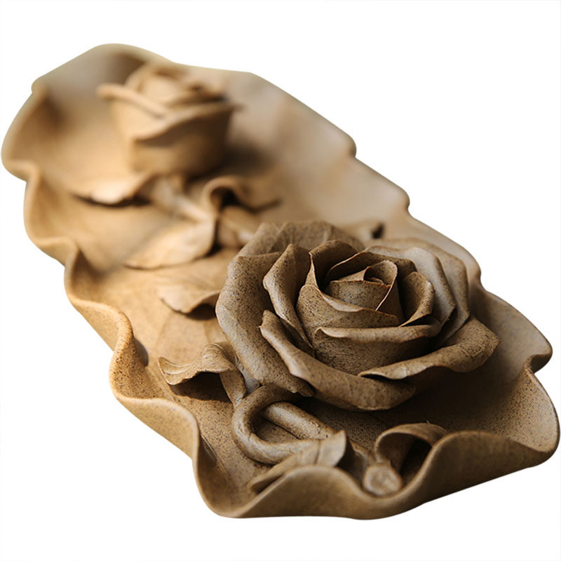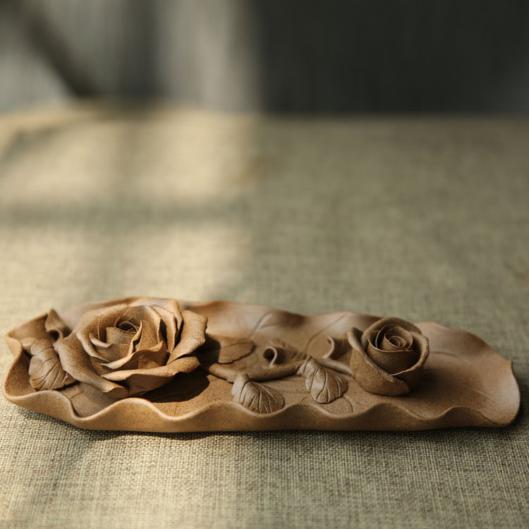Handmade incense cloud water original Zen thick ceramic Lotus rose Peony plate line incense plate seat Incense road