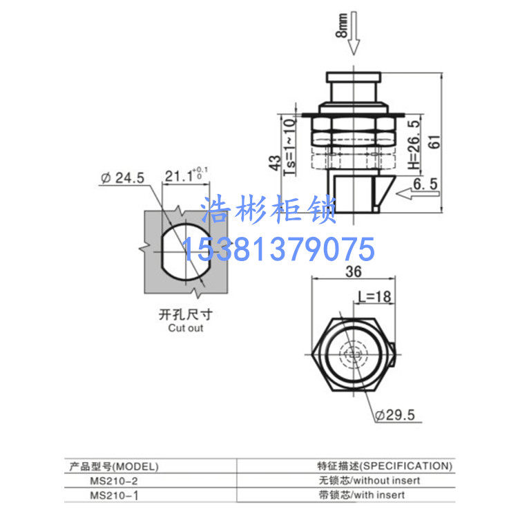 Distribution cabinet button lock MS210-1-2 Push-type door lock Cylinder lock Collision lock Cabinet main shell lock Industrial cabinet lock