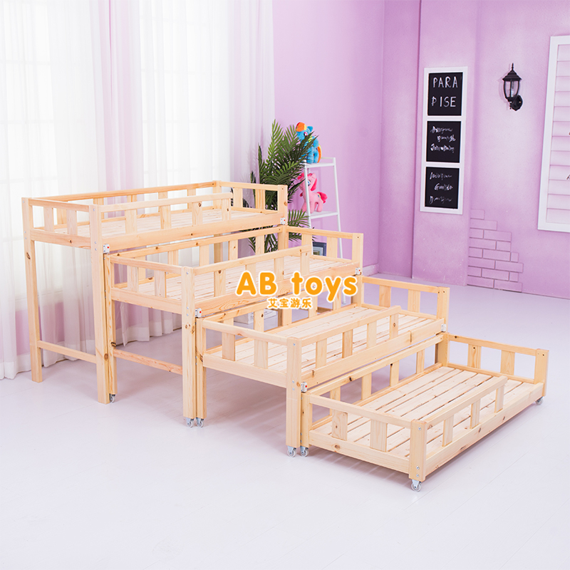 Log Activity Bed Four-layer Push and Push Bed Twin Bed Pine 130*58*20 Pine 138*58*20 Three-layer Push-pull Bed A-style paint-free thick pine style 170*1*70
