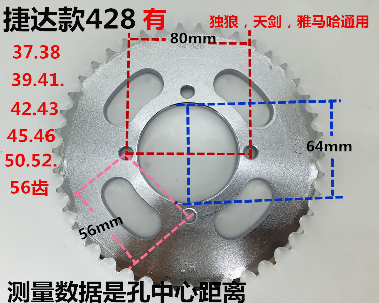 Tianjian 428-14 teeth small wheel speed Yamaha 428-37 teeth speed Yamaha 428-38 teeth with Yamaha 428-44 teeth warp Yamaha 428-50 tooth warp