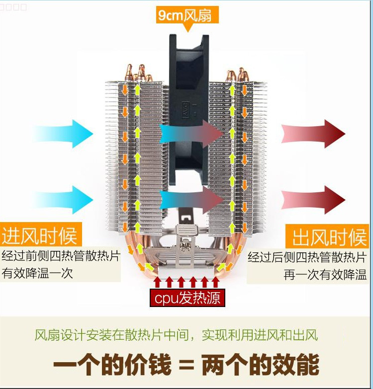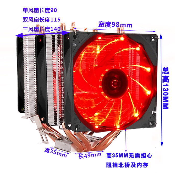 4 heat pipe copper tube cpu cooler Ultra quiet 1155AMD2011 pin cpu fan 1366 Desktop X79X58