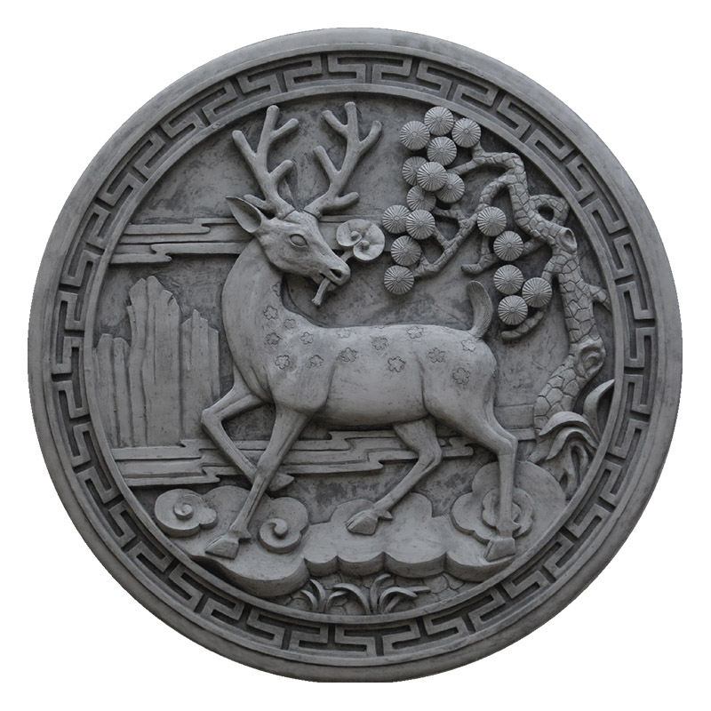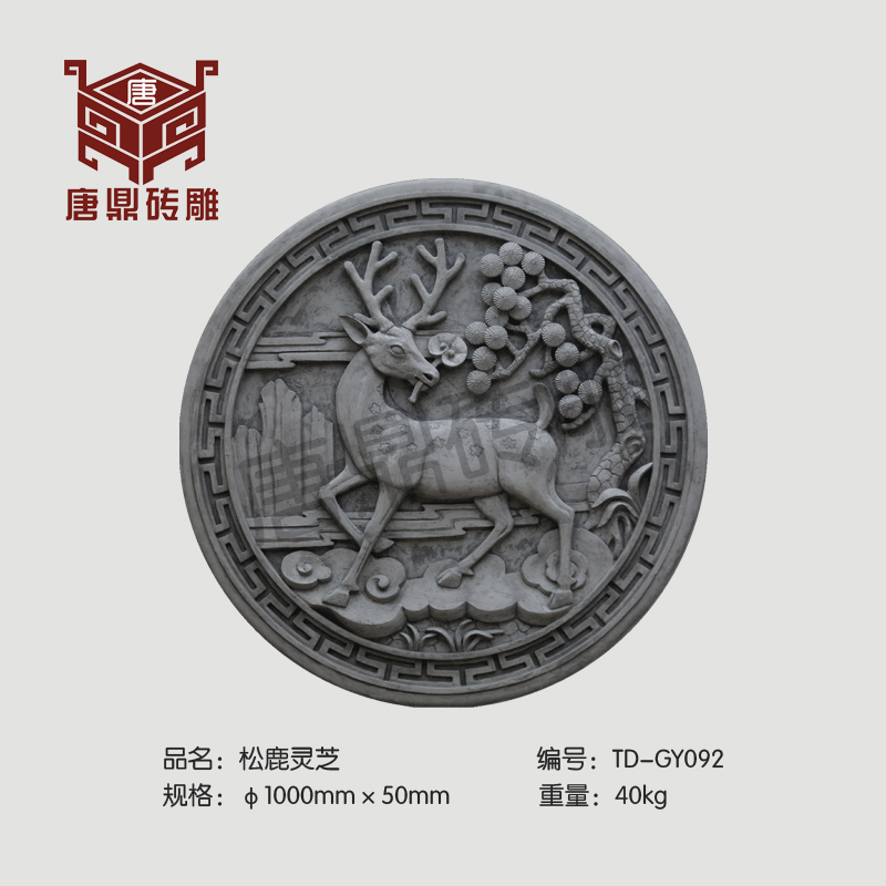 Tangding Brick Carving Antique Brick Blue Brick Chinese Shadow Wall Wall Center Circular Decorative Ornament Pine Deer Ganoderma φ1m
