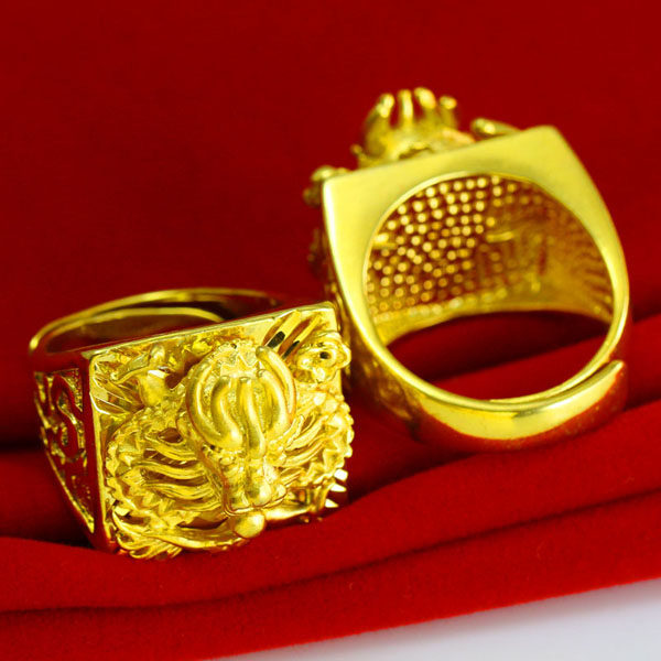 Gold ring 999 foot gold men's dragon ring square to quit fat people ring jewelry major 24K pure gold