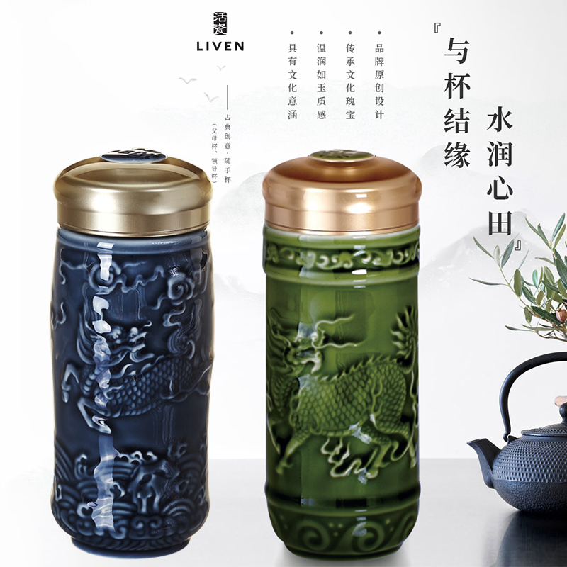 Dry Tanguan Live Porcelain ceramic with lid accompanied by portable customised lettering logo logo Gift Advertising Tea Water Mug