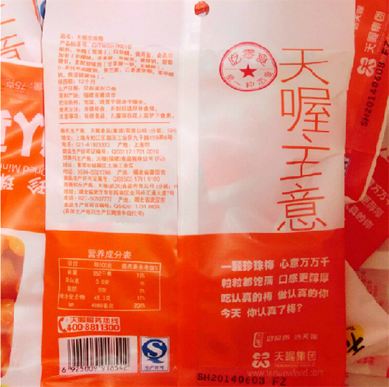 Shanghai Candied Heather Day Idea Pearl Plum 75g Bag Mezi Candied Fruits Dried Fruit Dried Fruit Meat Independent carrying convenience