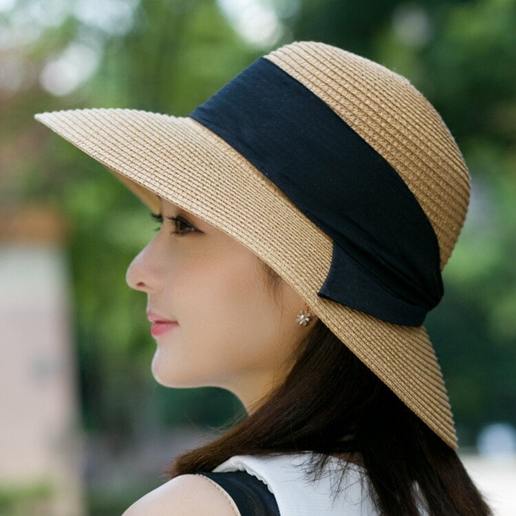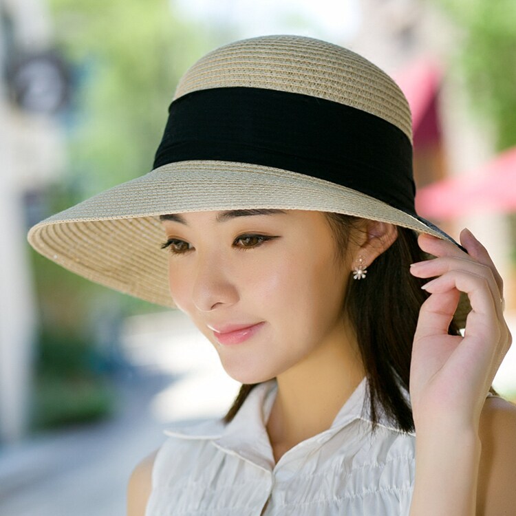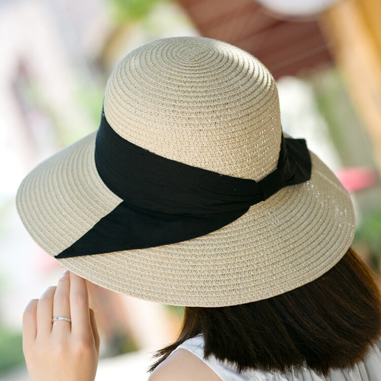 Hat female summer Korean version straw hat bow dome sun hat foldable big brim sun hat sunscreen beach hat