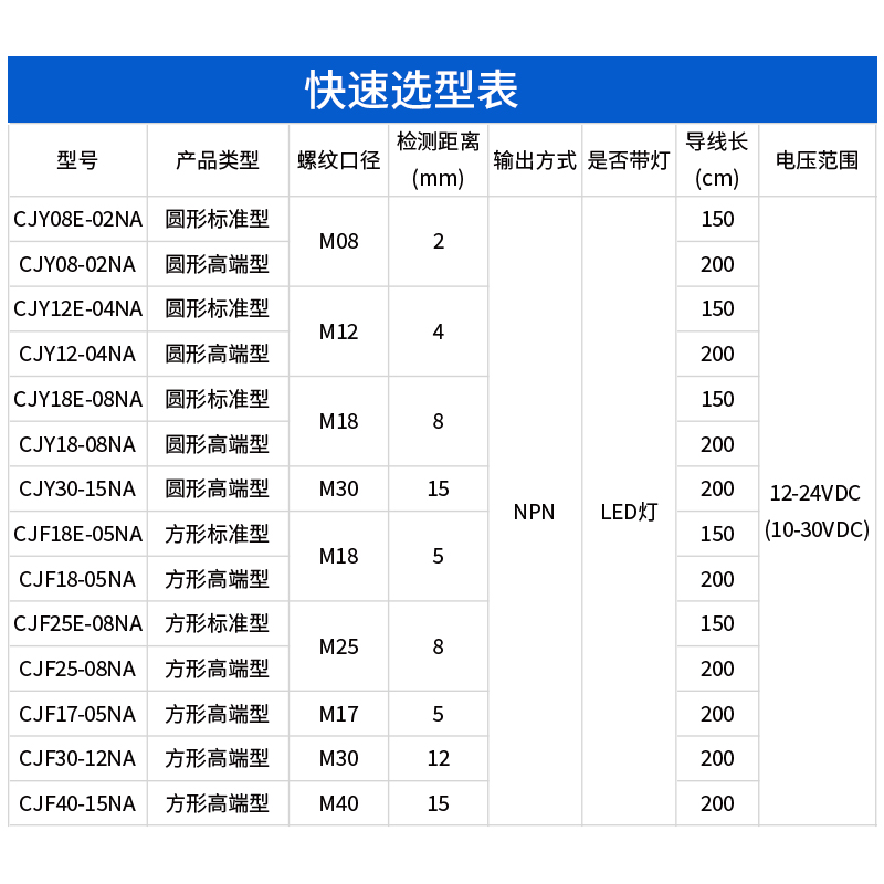 Changdo inductance type proximity switch third-line 24V normal open NPN square sensor M8 12 round metal induction