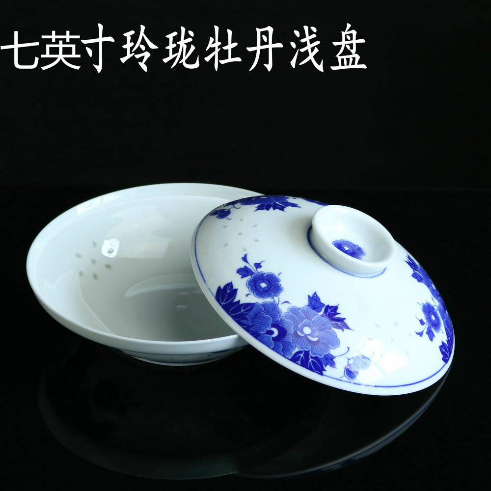 Jingdezhen Qingflower Lingong Exquisite Ware 7-8-inch with lid plate Ceramic Plate Bubble Face Cover Bowl with microwave oven