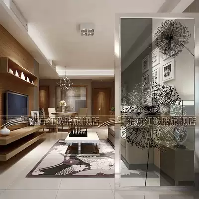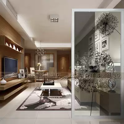 Art glass screen partition living room background wall entrance sliding door transparent frosted process double-sided simple dandelion