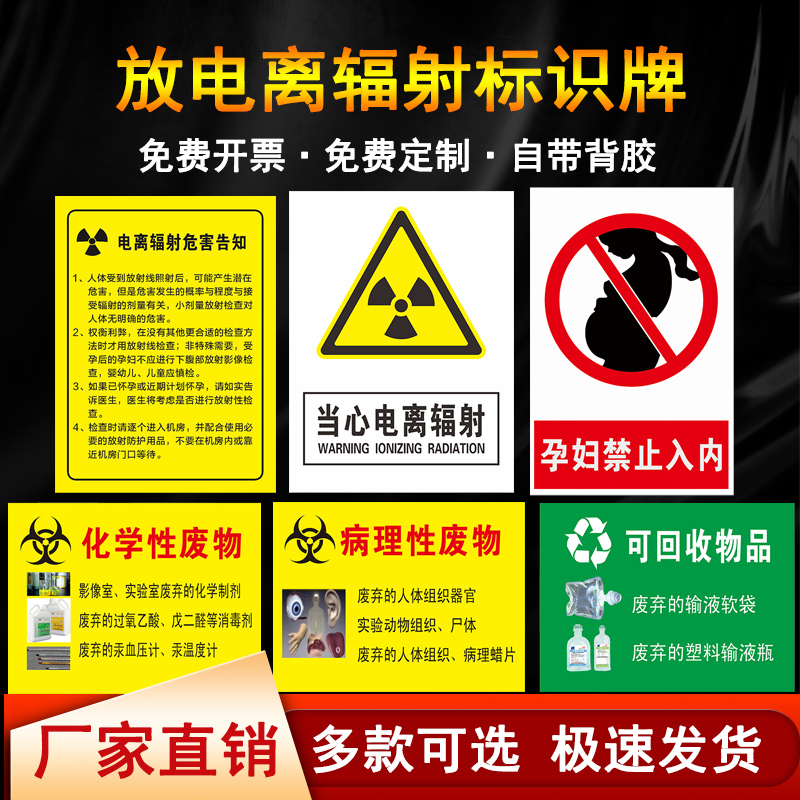 Radiology anti-radiation signs carefully ionizing radiation markers carefully watch for laser microwave radiation hazard anti-radiation safety warning signs warning signs aluminum plate reflection customization