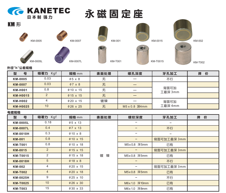 KM-0005L(0 18N)(5*13mm)KM-0007L(0 4N)(7*13mm)KM-001(0 8N)(10