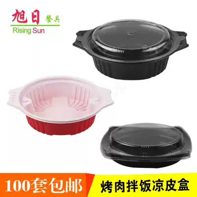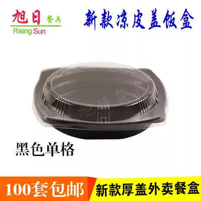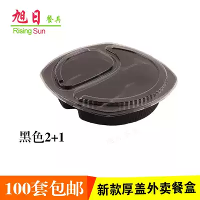 Disposable lunch box Black round packed lunch box Three-grid lunch box yellow braised chicken donburi lunch box Delivery cold skin box