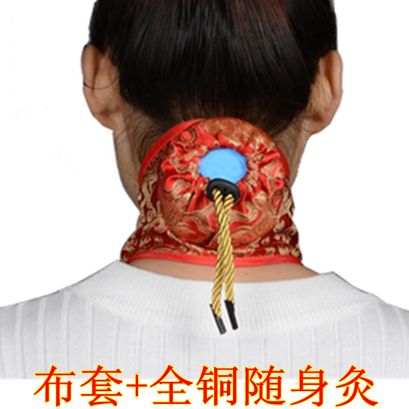 All-copper moxibustion Fig. All-copper moxibustion on the neck with cloth cover Fig. All-copper moxibustion on the waist